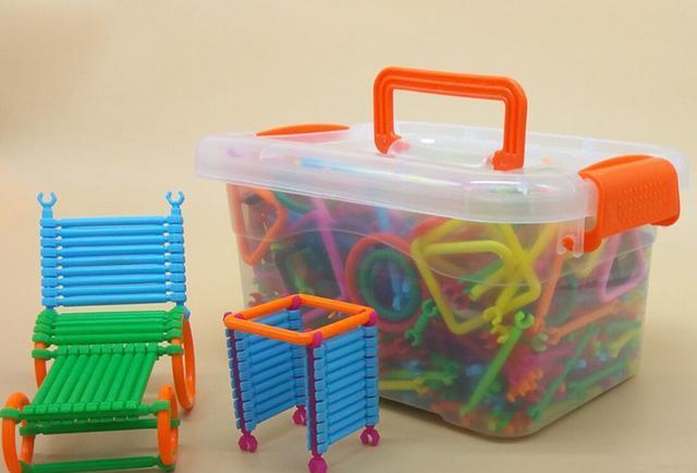 使用频率非常高,价格不高,加轮子可以拼装成车、飞机、船。预算充足的情况可以把多种积木搬回家,管道是长条的,大颗粒是立体的,魔术棒是塑料棍,雪花片是片状,组合出的造型各不同。